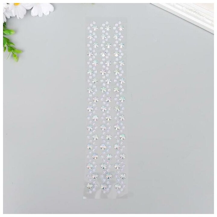 Декоративная самоклеющаяся лента из страз "Бело-цветная" (С3533-18) АппликА