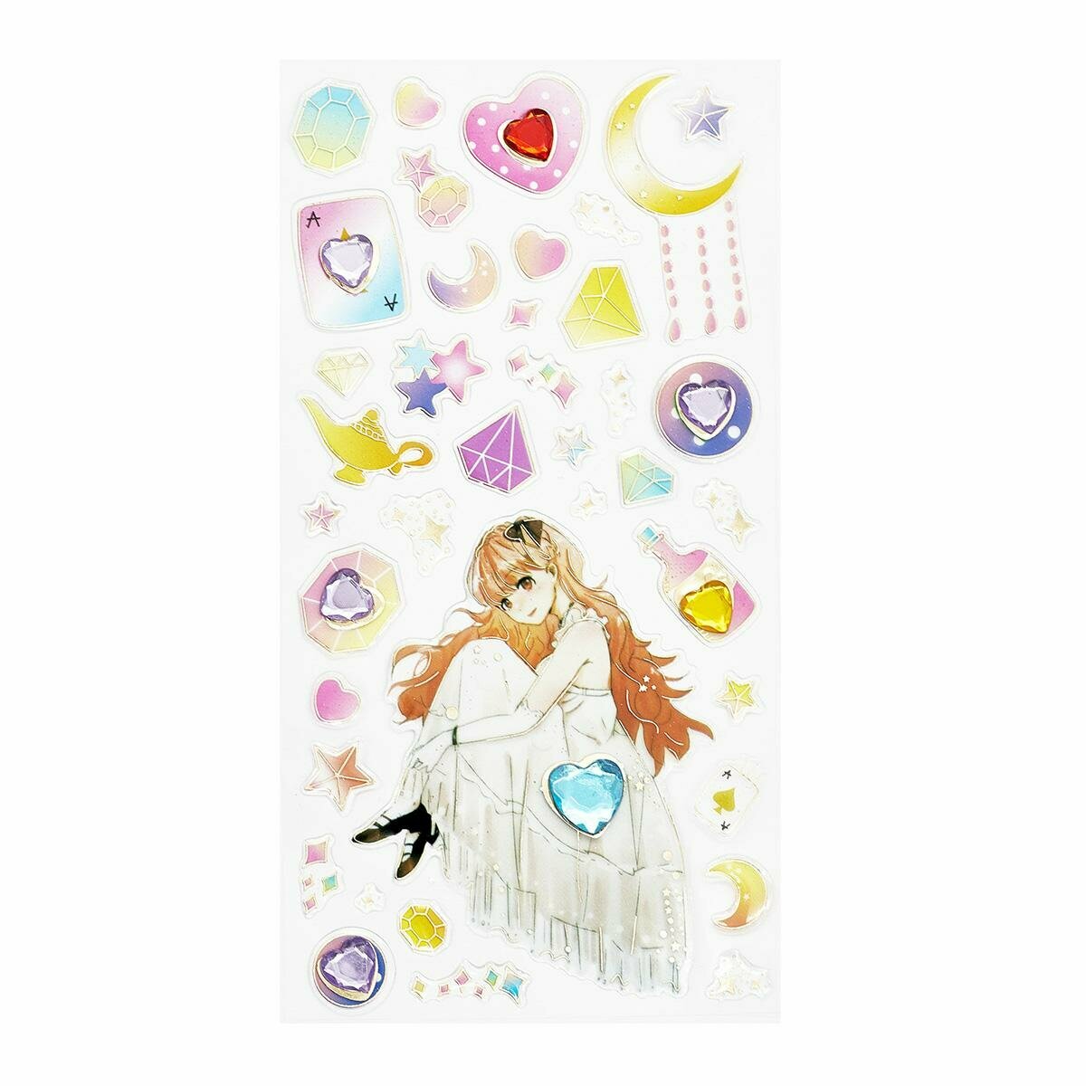 Материалы для творчества. Декоративные гелевые украшения со стразами. Состав набора - объемные гелевые наклейки: фигурка девочки, цветочки, сердечки, бабочки, и другие элементы, а также акриловые стразы в форме сердечка. Все элементы имеют клеевой слой. Упаковка - ПЭТ пакет с картонным вкладышем и европодвесом.