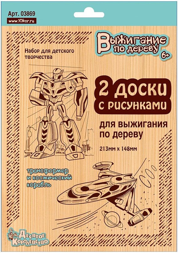 Доски для выжигания "Трансформер и космический корабль" (2 штуки) (03869) Десятое королевство