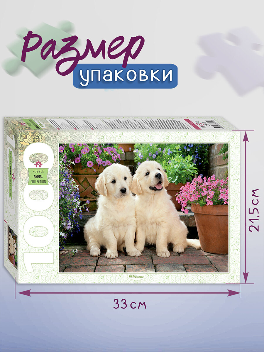 Пазл "Веселые друзья" состоит из 1000 элементов. Собаки на протяжении веков были и остаются лучшими друзьями человека. Собрав пазл, вы получите одну из самых красивых пород охотничьих собак - золотистого ретривера. Порода была выведена в Англии в XIX веке. Двое маленьких щенков расположились среди разнообразных цветов: диасции, лобелии и калибрахоа.
