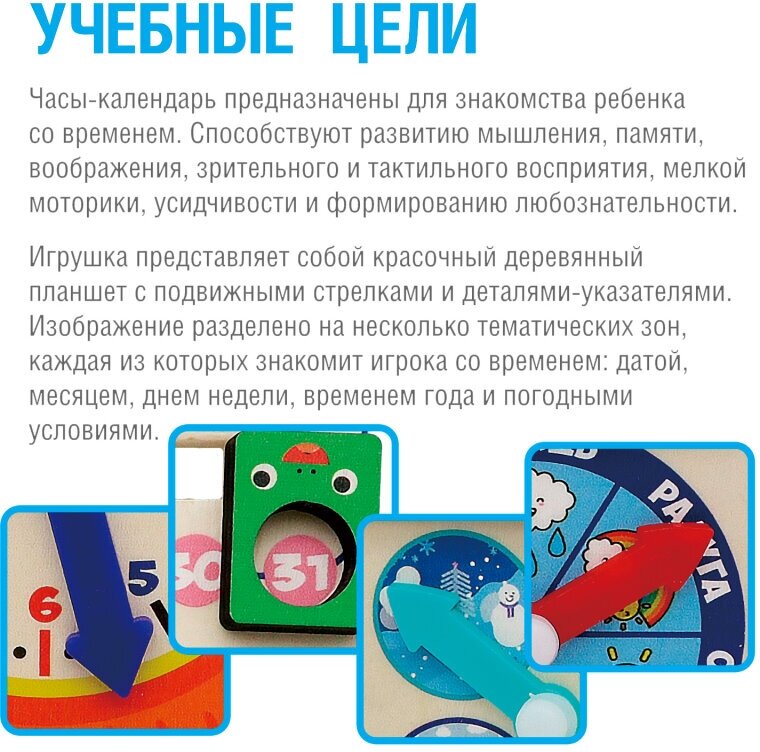 Обучающие чудо-часики из дерева "Календарь знаний" (ВВ4864) Bondibon