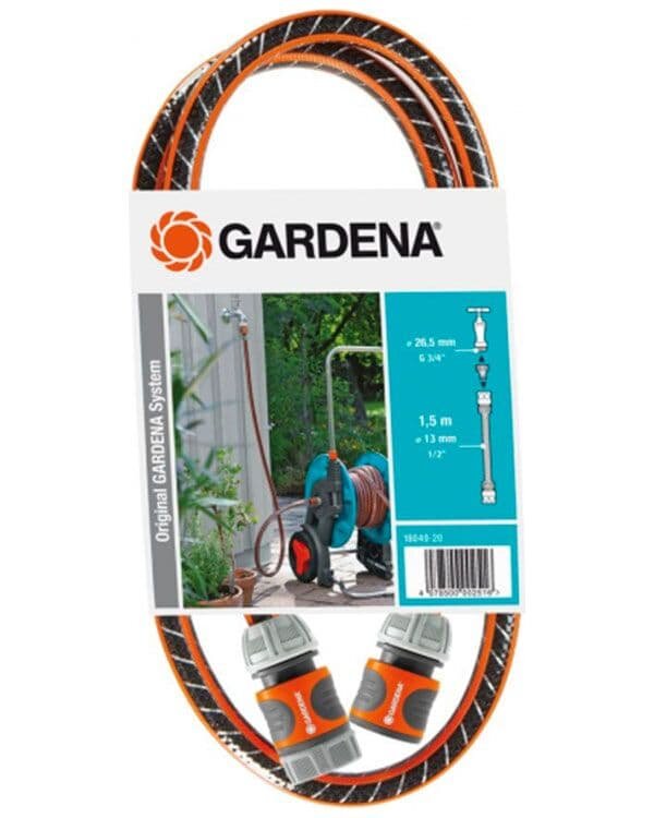 Комплект соединительный Gardena 18040-20.000.00 - дополнительные принадлежности для полива садового участка. Предназначен для присоединения шланга, используемого с катушками и тележками, к водопроводу. Комплект включает в себя соединительный шланг и необходимые фитинги для присоединения.