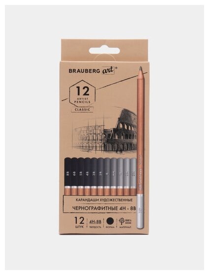 Карандаши чернографитные художественные BRAUBERG ART "CLASSIC" - универсальны в рисовании и обладают огромными возможностями в передаче света и тени. Подходят для создания легкого наброска, быстрого стремительного рисунка или полноценной картины.