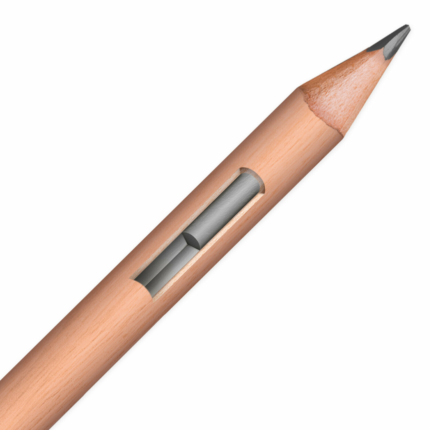 Карандаши изготовлены из дерева высокого качества. Имеют круглое сечение. Карандаши длиной 176 мм легко точатся и не крошатся. Набор состоит из карандашей различных степеней твердости - 4H - 1 штука (диаметр грифеля 2,0 мм), 3H - 1 штука (диаметр грифеля 2,0 мм), 2H - 1 штука (диаметр грифеля 2,0 мм), H - 1 штука (диаметр грифеля 2,0 мм), HB - 1 штука (диаметр грифеля 2,0 мм), B - 1 штука (диаметр грифеля 2,2 мм), 2B - 1 штука (диаметр грифеля 2,4 мм), 3B - 1 штука (диаметр грифеля 2,45 мм), 4B - 1 штука (диаметр грифеля 2,45 мм), 5B - 1 штука (диаметр грифеля 3,0 мм), 6B - 1 штука (диаметр грифеля 3,0 мм), 8B - 1 штука (диаметр грифеля 3,5 мм). Корпус лакированный с серыми деталями. Поставляются заточенными.