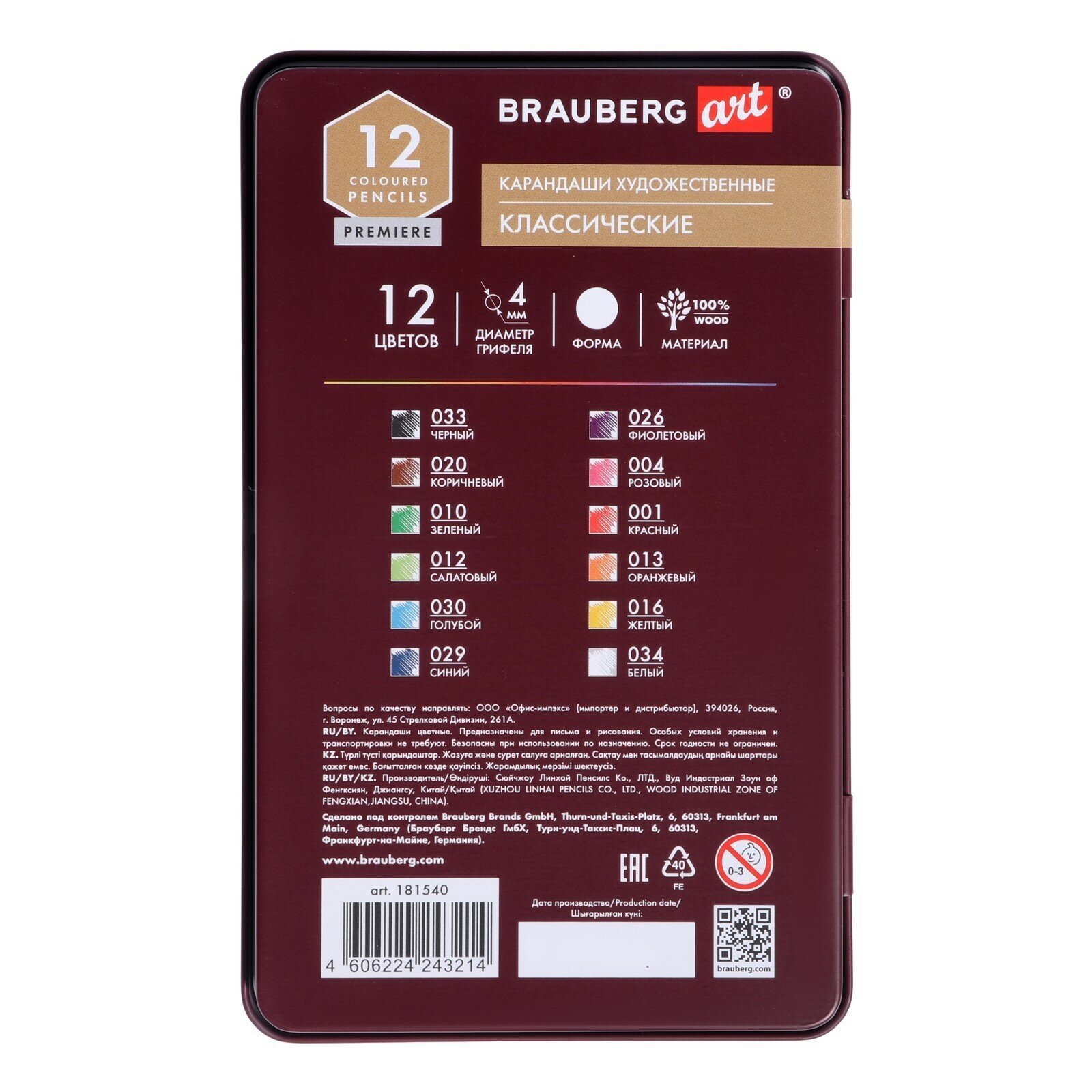 Карандаши художественные "ART PREMIERE" 12 цветов (181540) Brauberg