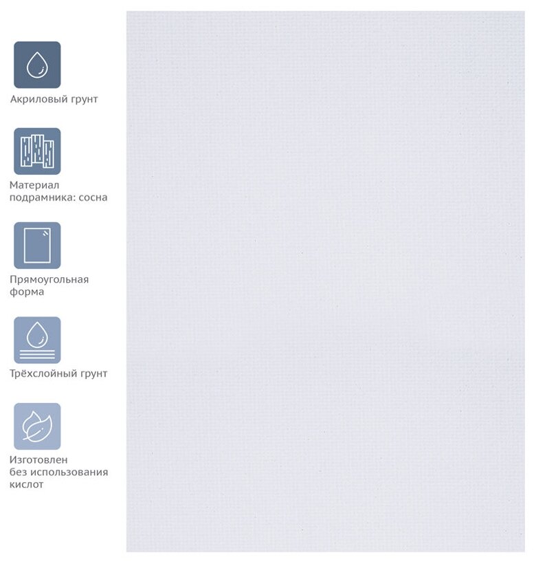 Холст покрыт акриловым грунтом, предназначен для живописи масляными, акриловыми, темперными красками.