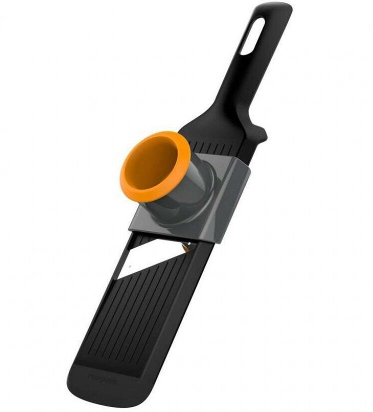 Овощерезка "Fiskars" изготовлена из пластика и нержавеющей стали. Оснащена лезвием для натирания различных овощей. Изделие имеет удобную ручку с отверстием для подвешивания на крючок. В комплекте - пластиковый предохранитель для пальцев, делающий процесс натирания безопасным.