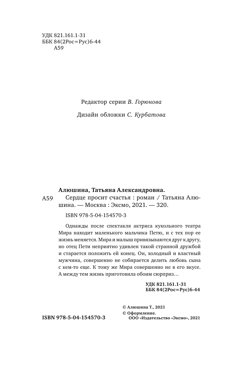 Книга: Сердце просит счастья (Алюшина Татьяна Александровна); Эксмо, 2021