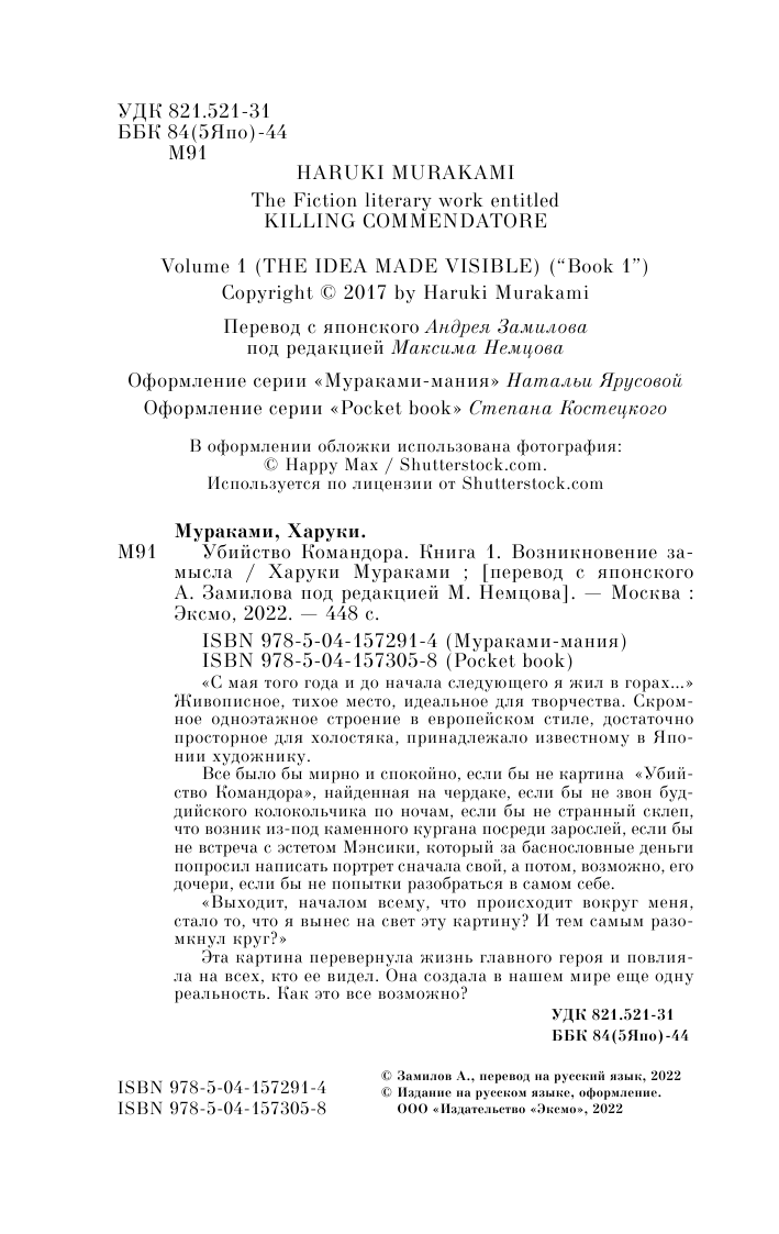 «Убийство Командора» — шедевр, написанный известным в Японии художником Томохико Амадой. Картина, которую никто не должен видеть. Но главный герой романа, художник-портретист, нашел полотно на чердаке дома Томохико Амады, когда поселился в нем после расставания с женой. «Выходит, началом всему, что происходит вокруг меня, стало то, что я вынес на свет эту картину? И тем самым разомкнул круг?»