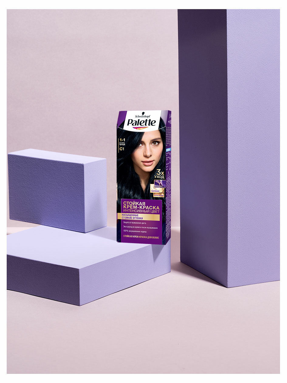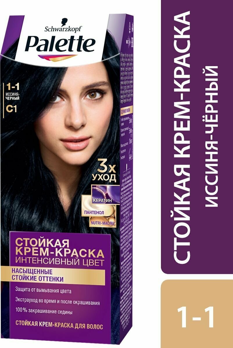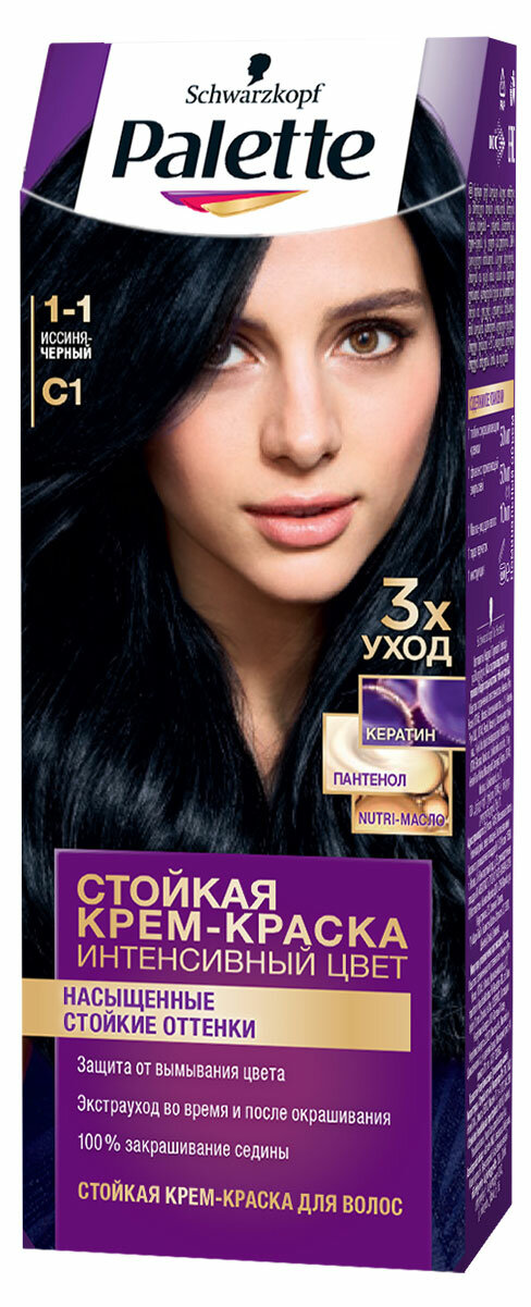 Краска для волос Icc 1-1 C1 Иссиня-черный Palette/Палетт 110мл ХенкельRU (1568370)