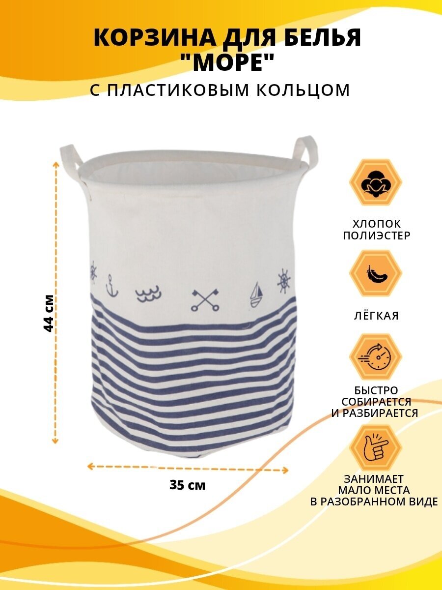 Корзина для белья Рыжий кот Море с пластиковым кольцом 35*35*44см 008588