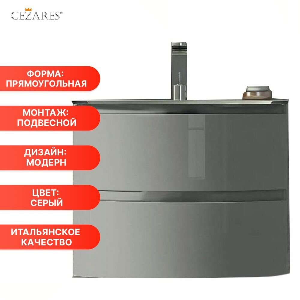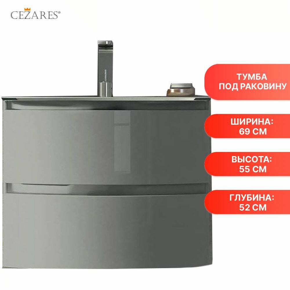 Тумба под раковину Cezares Vague 69 54854 подвесная Grigio lucido