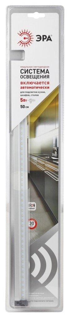 Светодиодная система ЭРА LM-5-840-I1 является одним из востребованных источников освещения на сегодняшний день и оснащена сенсорным управлением на основе пассивного инфракрасного датчика, который реагирует на движение человека. Она подходит как для внутреннего освещения рабочих мест, так и для подсветки предметов интерьера. Модульные системы освещения имеют явное преимущество, благодаря равномерному распределению света. Кроме того, светодиодная линейка обеспечивает оптимальное количество света для освещения рабочих поверхностей кухни, письменных столов и других предметов интерьера при минимальном потреблении электроэнергии. Еще одним большим преимуществом является то, что такая система довольно просто устанавливается. Также легко ее можно демонтировать, перенести и установить на новом месте.