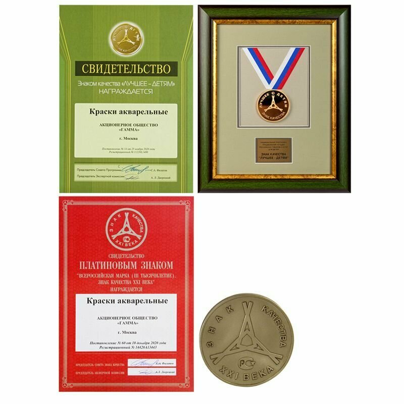 Благодаря качественному прозрачному связующему в составе, цвета акварели яркие и чистые.