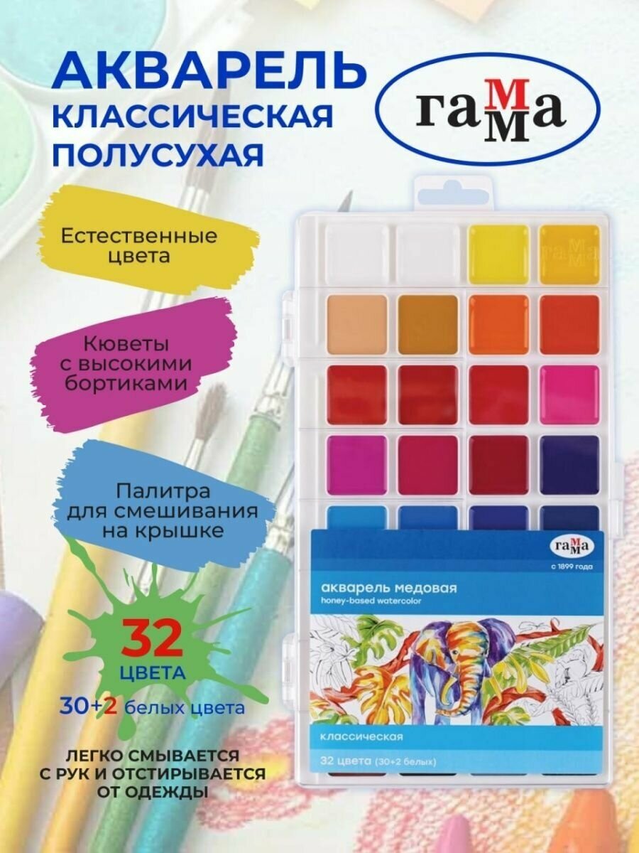 Краски акварельные медовые 32 цвета "Классическая" (1009199) ГАММА