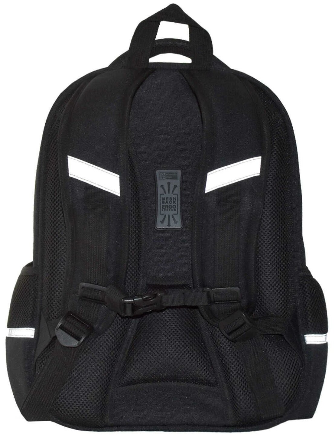 ЭВА-панель с износостойкой искусственной кожей, водоотталкивающая ткань, лямки, регулируемые по длине, нагрудный ремешок для регулирования нагрузки, светоотражающие элементы, пластиковые ножки на дне.