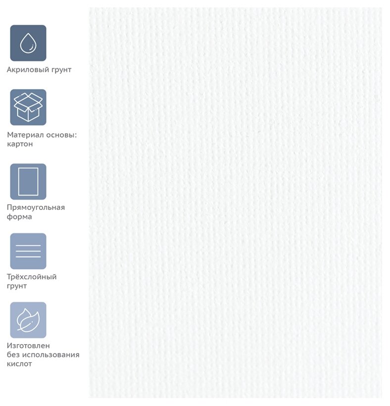 Холст покрыт акриловым грунтом, предназначен для живописи масляными, акриловыми, темперными красками. Плотность 280 г/м2.