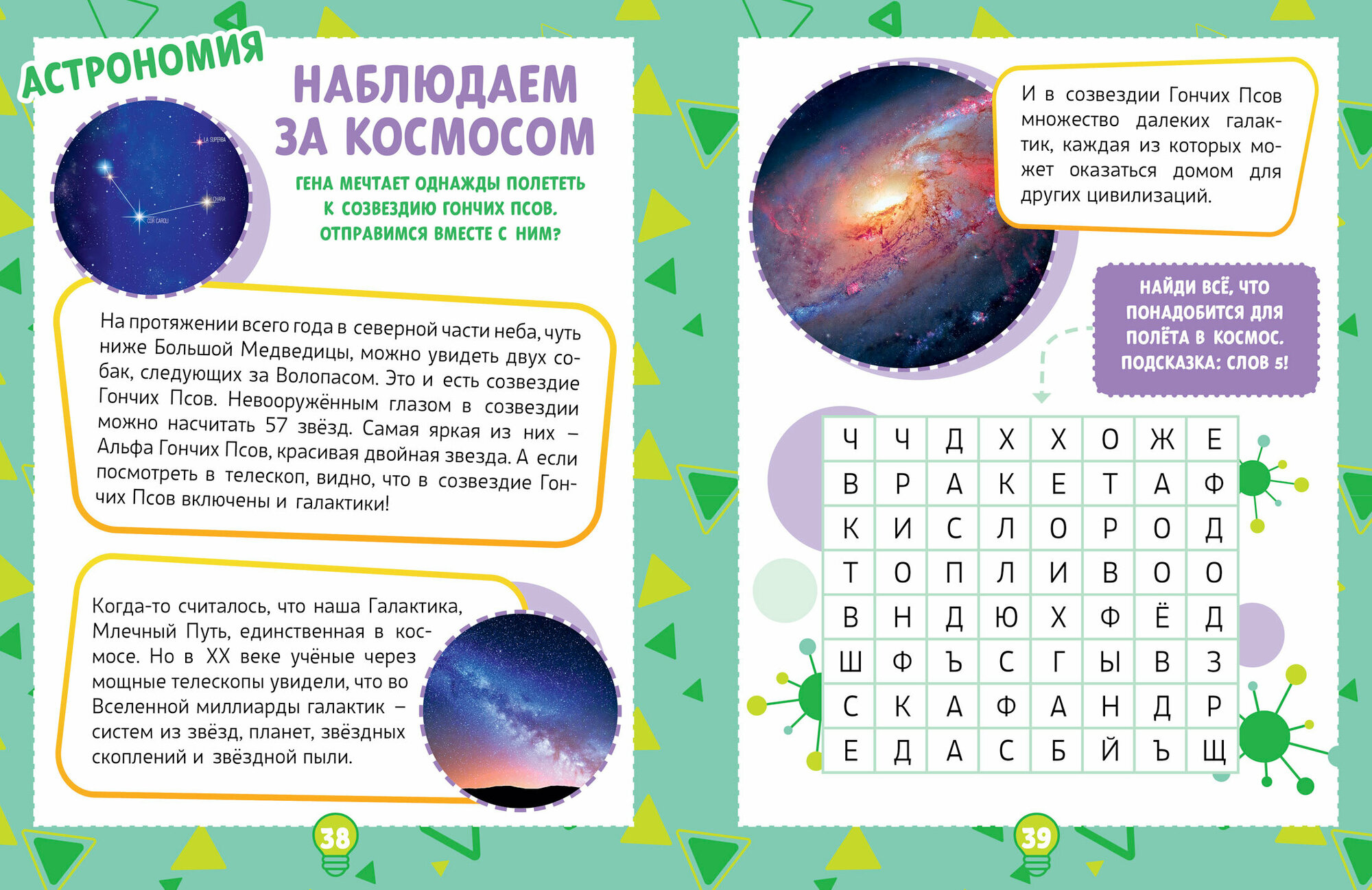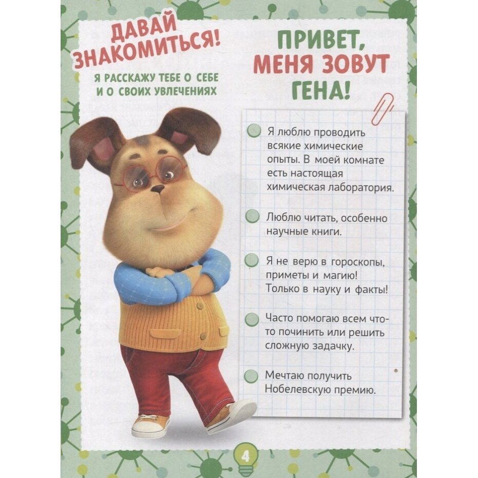 Он любит читать научные книги, ставит эксперименты и доверяет только проверенным фактам. Может быть, тебя тоже интересуют опыты и исследования? Тогда заполни эту хобби-тетрадь вместе с Геной и раскрой секреты разных наук!