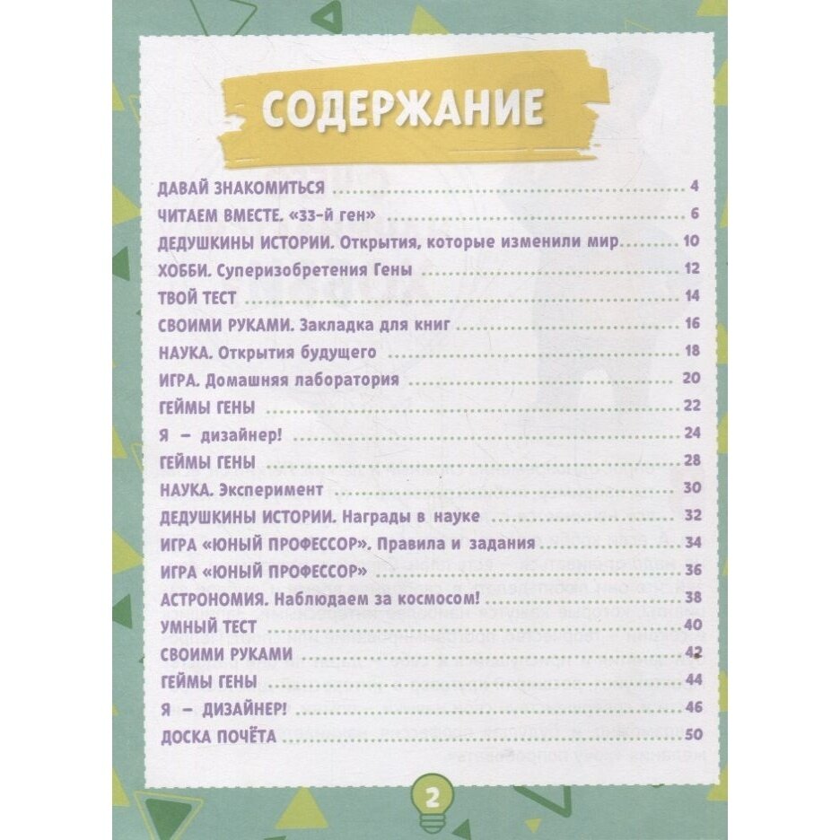 Эта тетрадь расскажет тебе об открытиях, которые изменили мир, о важных научных наградах, а также об учёных и их необычных хобби. Ты понаблюдаешь за космосом и заглянешь в будущее. Вместе с Геной приготовишь полезный "умный" завтрак, сделаешь зарядку для ленивых и научишься вязать шарф.