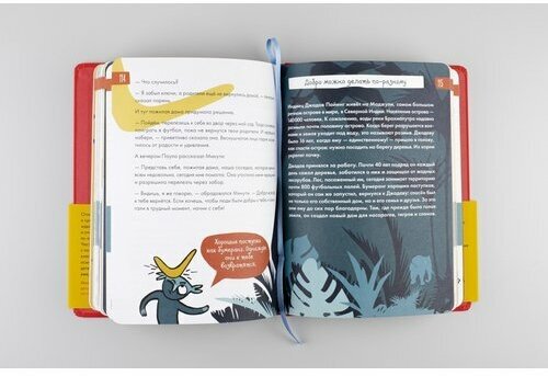 Ежедневник учитывает особенности возрастной психологии детей, поэтому информация подается в игровом формате: заполнение дневниковых записей чередуется с рисованием, ответами на вопросы, интересными фактами и полезной информацией из области психологии. Чтобы ребенку было легче воспринимать материал, на протяжении всего ежедневника его будут сопровождать два героя: мальчик Паоло и его воображаемый друг, проказник Минути.