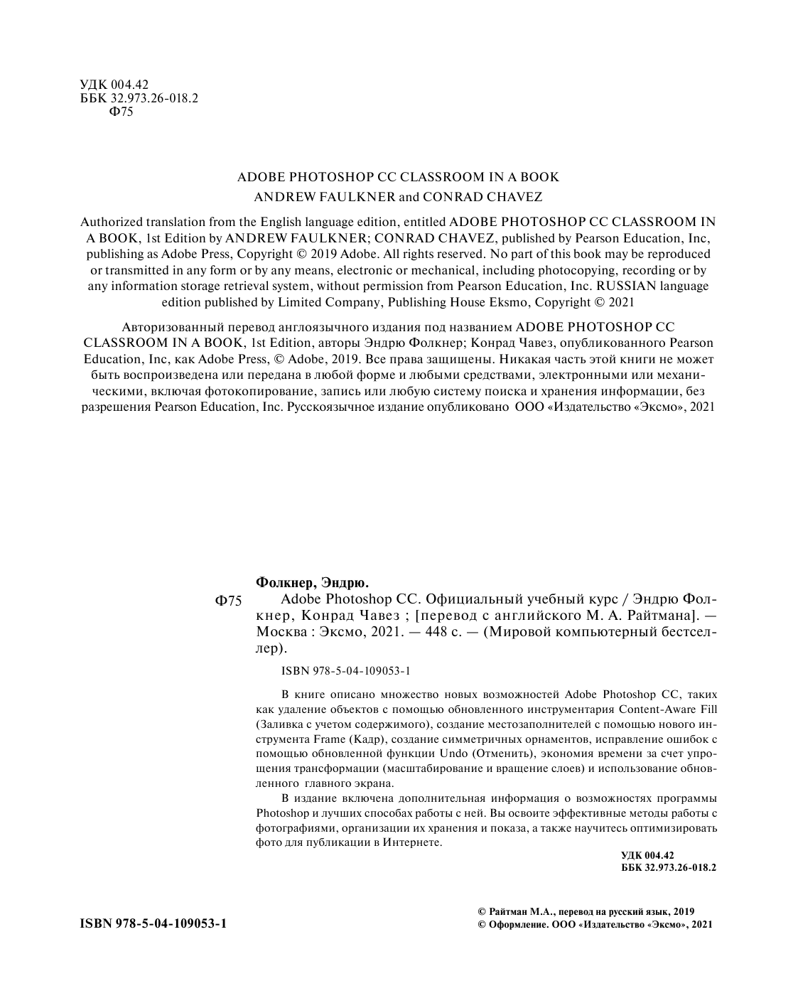 Adobe Photoshop СС. Официальный учебный курс (Фолкнер Эндрю, Чавез Конрад); Эксмо-Пресс, 2021