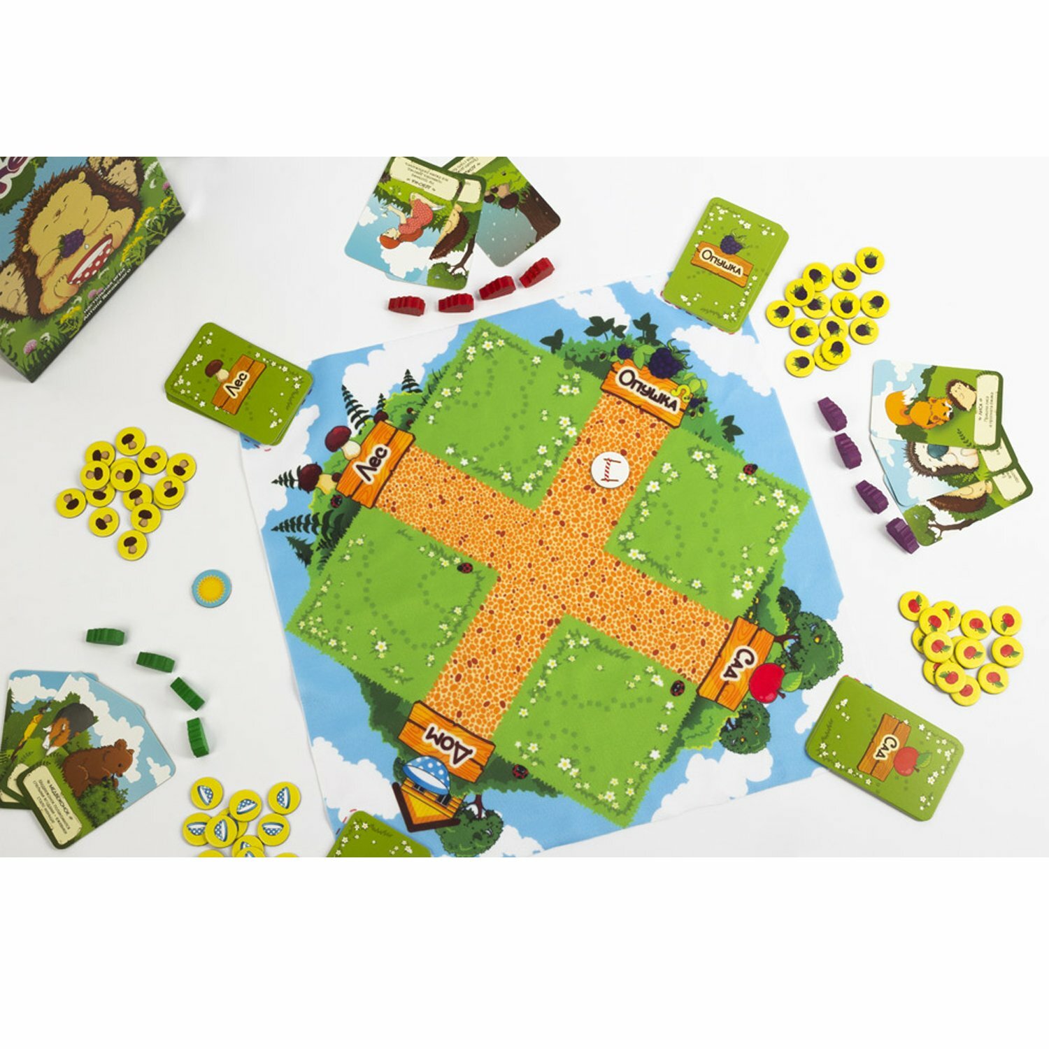 На игровом поле 4 тропинки: к саду, к дому, на опушку и в лес. В каждом месте ёжиков ждёт еда, где-то её сегодня больше, а где-то меньше. Количество еды в каждом месте определяется с помощью карт. Игроки решают, куда отправятся их ёжики и выставляют фигурки своего цвета на тропинки, образуя ежиную очередь.