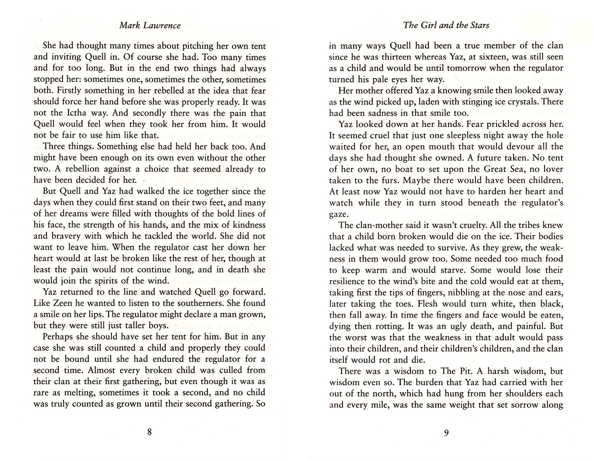 She will learn that her weaknesses are another kind of strength. And she will learn to challenge the cruel arithmetic of survival that has always governed her people.
