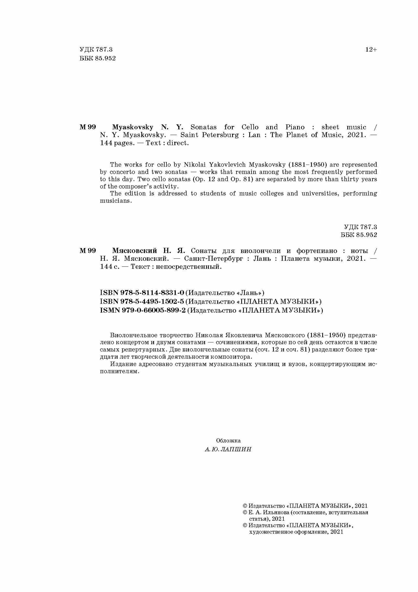 Сонаты для виолончели и фортепиано. Ноты (Н. Я. Мясковский); Издательство «Планета музыки», 1911, 1948-1949
