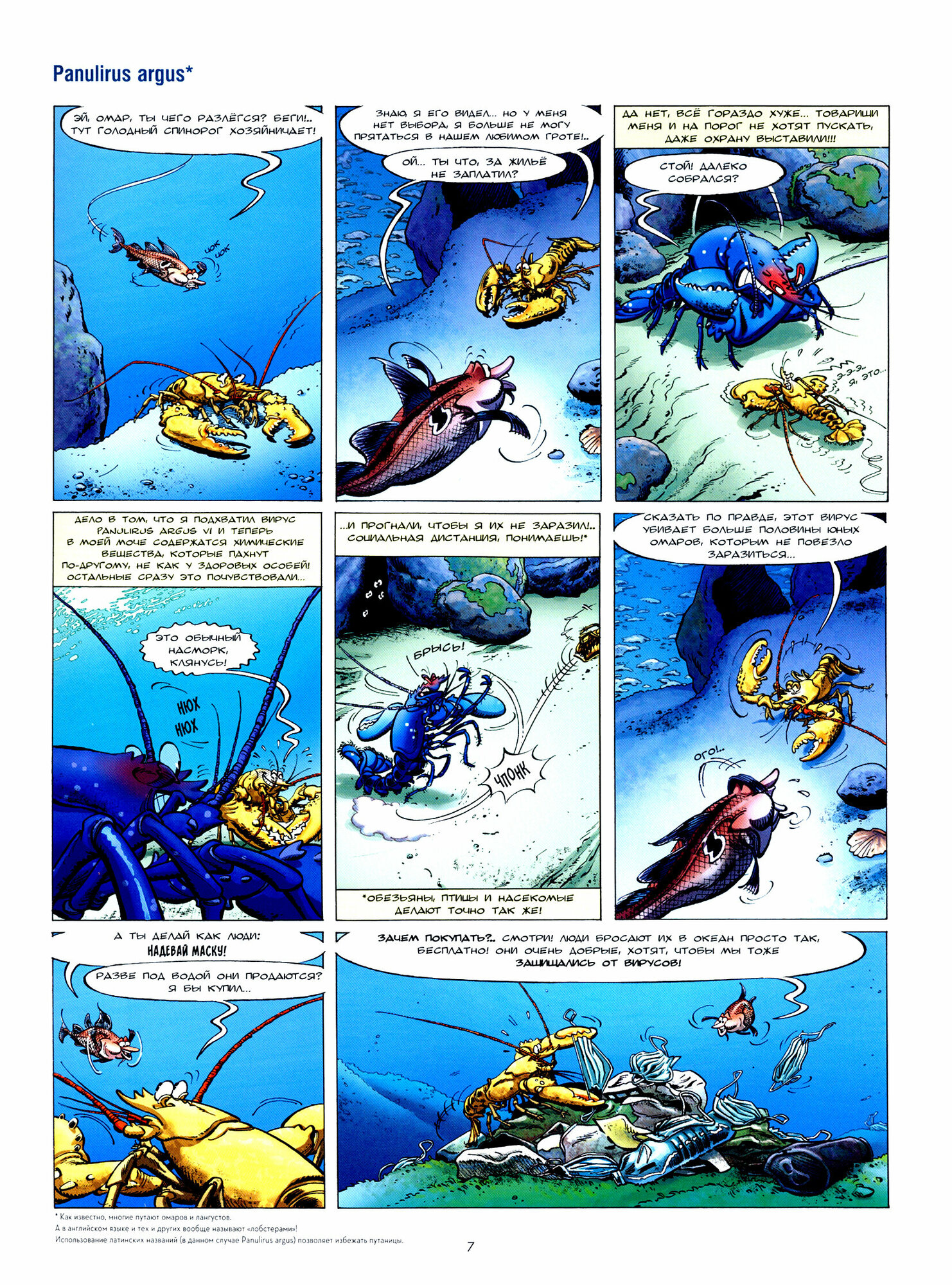 Морские животные в комиксах" возвращаются - встречайте шестой выпуск! Авторы во главе с бессменным сценаристом серии Кристофом Казновом вновь приглашают читателей в "мир безмолвия... который не такой уж безмолвный". И, как всегда, в этом путешествии у вас будут лучшие гиды, знающие морские глубины как родной дом. Собственно, это и есть их родной дом, ведь сопровождать вас будут краб-декоратор и морская цикада, краснопёрый опах и осьминог Дамбо, искристоногий краб и рыба-дракон! А ещё вы узнаете, кто такие "чёрные курильщики", что такое шкала Бофорта, как сохраняют тепло морские игуаны и чем уникален "червяк из Роскофа".