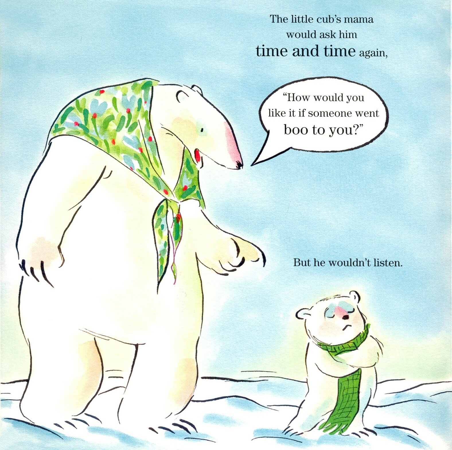 At the top of the world, surrounded by snow and ice, lives a very cheeky polar bear cub who loves to go…