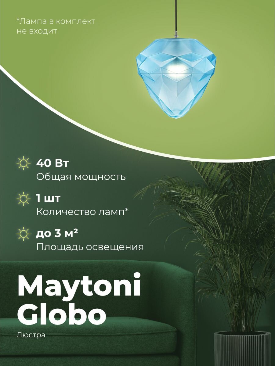 Подвесной светильник Globo P053PL-01BL - продукт известной компании Maytoni (Германия). Имеет максимальную мощность 40 Вт, освещает площадь до 2 кв. м. Отлично подойдет для таких мест, как гостиная, кафе, кухня, над кухонным островом, офис, прихожая и коридор. Впишется в интерьеры следующих стилей: модерн.