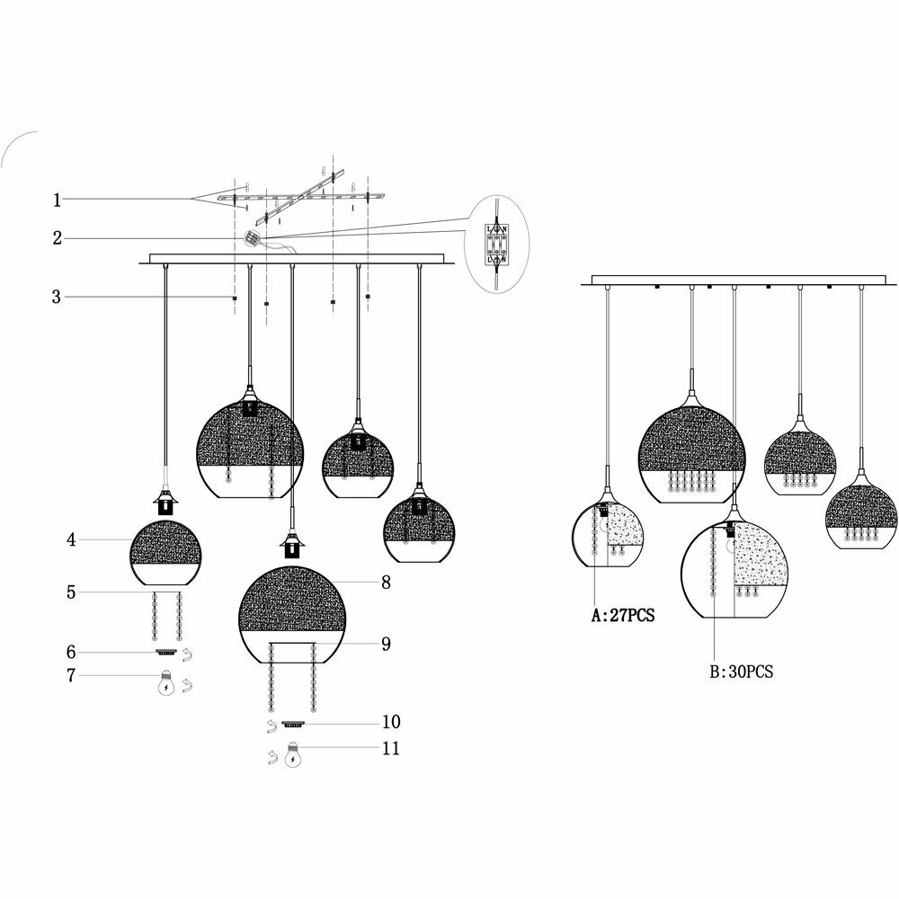 | Цвет плафонов | Прозрачный |