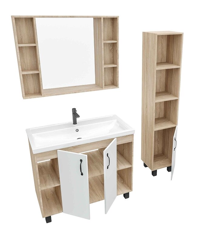 Зеркало Флай 100 см отражает современные тенденции в дизайне мебели для ванных комнат: минимализм с простыми и понятными формами, цвета дуба с текстурой, отсутствие лишних деталей. Открытые полки с 2х сторон обеспечивают быстрый доступ к аксессуарам. Зеркальный шкаф изготовлен из ЛДСП, устойчивой к механическим воздействиям, устойчивый перепадам температур и высокой влажности. Подвесы для крепления шкафа - в комплекте.
