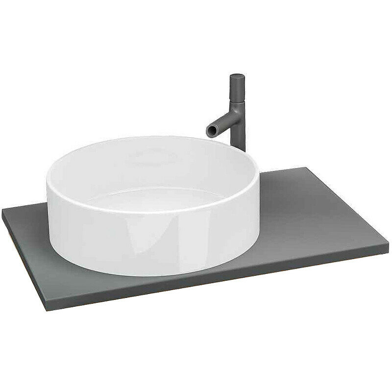 Столешница Флай 70 cм выполнена из МДФ: серая матовая пленка с покрытием SoftTouch придаст современный вид и позволит установить накладную раковину.