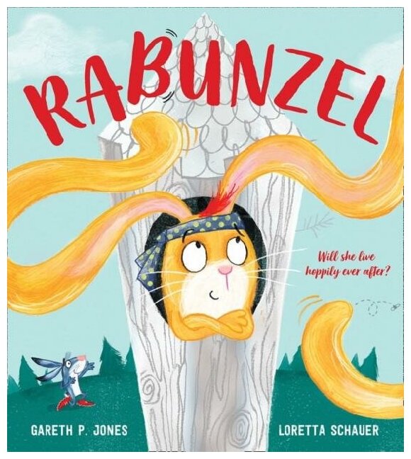 The answer? Rabunzel must be kept safe ... in towering hutch, high in the sky. Here Rabunzel waits grumpily for her mother's daily visit with carrots and fresh lettuce, letting down her ears so she can climb up the tower.