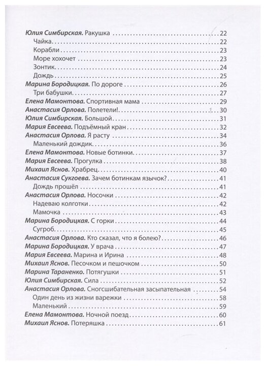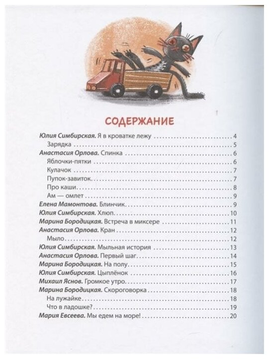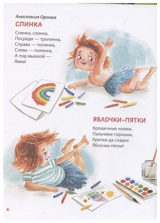 большой формат, красочные иллюстрации прекрасно выполнены, хорошая и плотная бумага будут отличным подарком для маленького читателя. стихи современных авторов запоминаются сразу.я использовала их как потешки во время зарядке и переодевании. дочка с большим интересом рассматривает иллюстрации, тянется к картинкам. стоит своих денег.рекомендую к покупке
