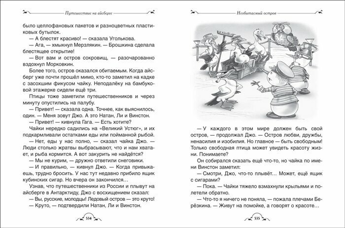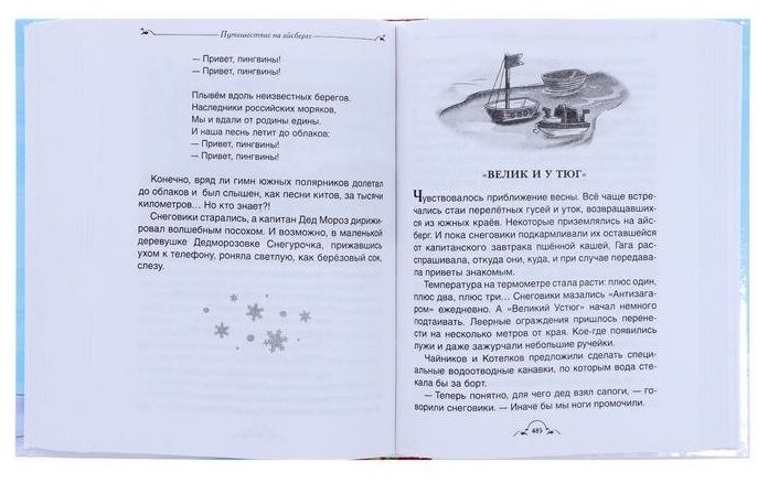 Отличное издание для чтения ребёнку 5-7 лет. Все 6 прекрасных новогодних детских рассказов Андрея Усачева в одной книге с чудными оригинальными иллюстрациями. Конечно, это издание с черно-белыми иллюстрациями проигрывает более дорогому (почти в два раза) с цветными такими же картинками, но зато оно более компактно, бумага достаточно плотная, не рвётся при перелистывании. Сами истории идеально подходят к предновогоднему времени и очень нравятся ребёнку.