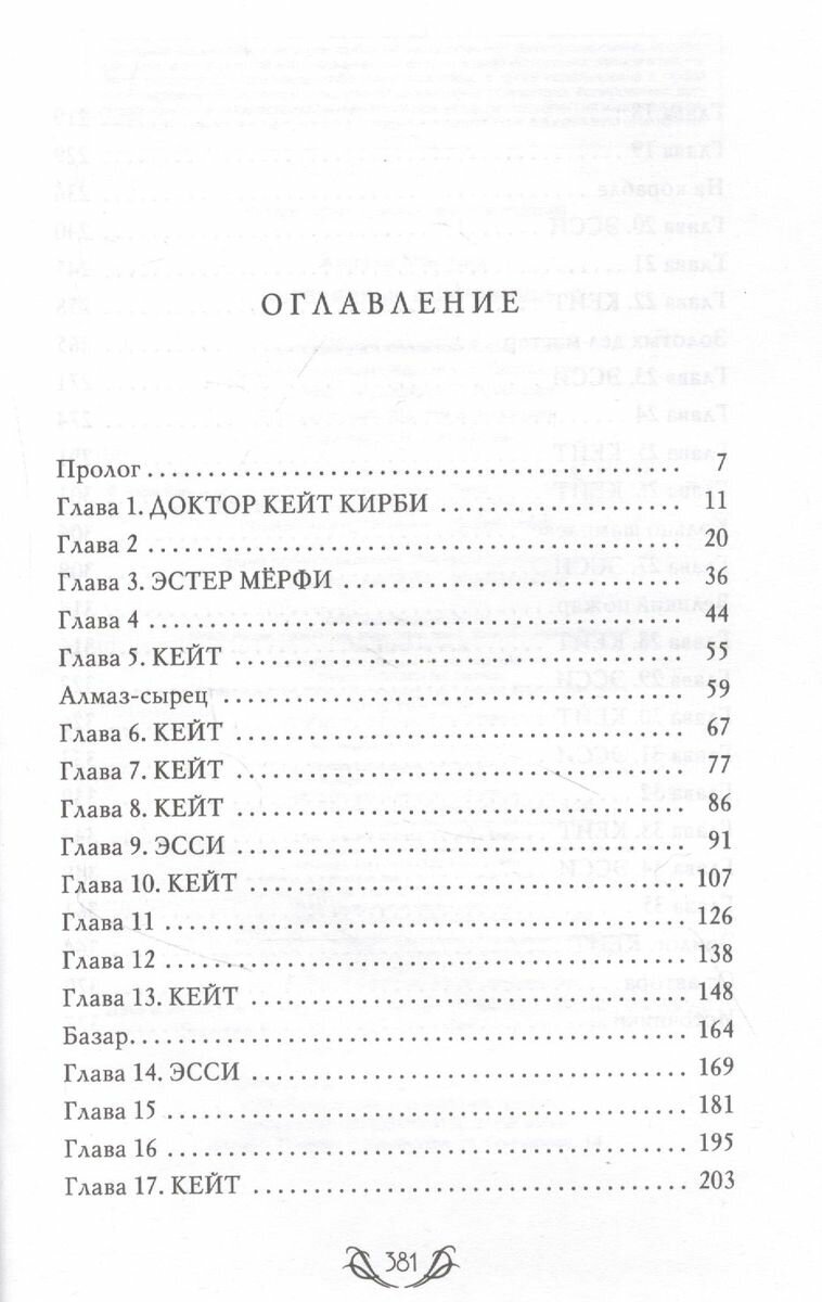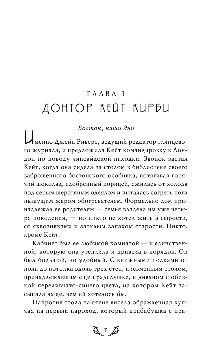 Если вы любите захватывающие истории с загадками и приключениями, то этот роман придется по вкусу! Глава за главой раскрывается тайна в двух временных линиях, в одной - Кейт Кирби, специалист по ювелирному искусству и ее помощник-фотограф летают по миру в поисках зацепок, в другой, на сто лет пораньше - ее бабушка ввязывается в загадочные лондонские дела и знакомится с первыми суфражистками. Почему бабушка покинула Англию и никогда в нее больше не возвращалась? И как с этим связаны сокровища Чипсайда? (в начале XX века в Лондоне в подвале одного дома были найдены драгоценности - об этой интересной истории можно прочитать в дополнительных материалах к книге).
