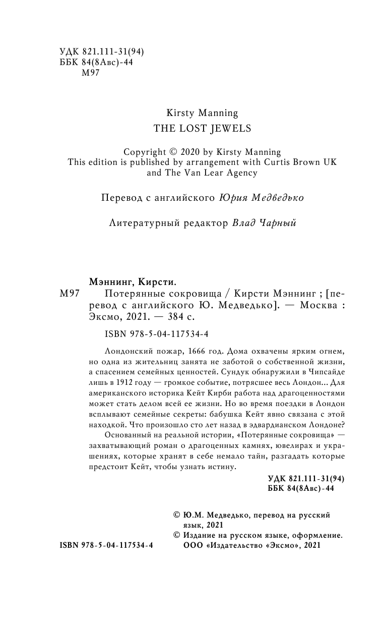 Книга: Потерянные сокровища (Мэннинг Кирсти); ООО "Издательство "Эксмо", 2021