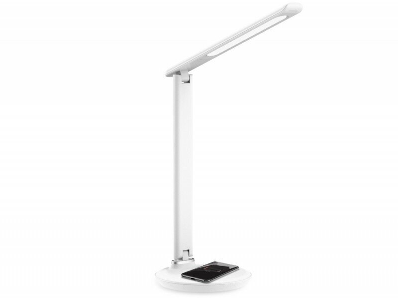 Сенсорная кнопка включения и регулирования яркости и цветности лампы расположена в нижней части изделия на площадке со встроенным зарядным устройством. Беспроводное зарядное устройство, установленное в светильнике, будет работать с любым устройством, которое сертифицировано Qi. Встроенные осветительные элементы обеспечивают качественное однородное освещение без мерцания и вспышки при включении, что предотвращает быструю утомляемость глаз.