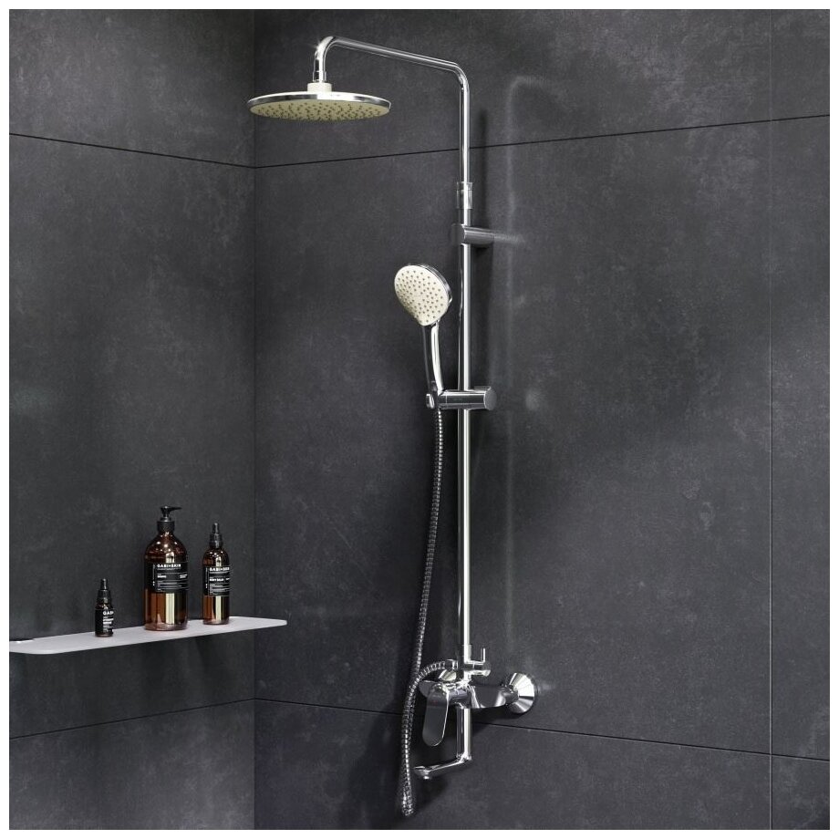 | ВКоробке | Душевая стойка - 1 шт. Верхний душ - 1 шт. Лейка - 1 шт. Шланг - 1 шт. Смеситель - 1 шт. Эксцентрик - 2 шт. Инструкция - 1 шт. |