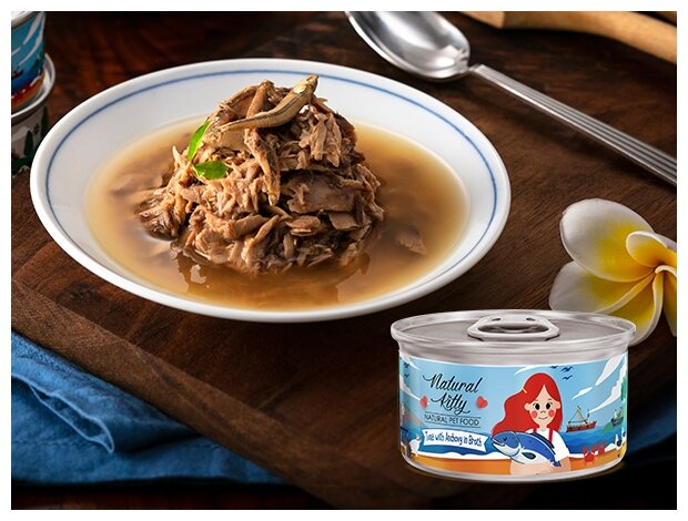 Простой и полезный рецепт, совсем как домашний - мясо дикого тунца, смешанное с вкусными анчоусами и рыбным бульоном. Вкуснейший рыбный бульон Natural Kitty без зерна, глютена, пшеницы, сои, камеди, крахмала, агар-агара, красителей, ароматизаторов и консервантов. Лучшая натуральная и здоровая пища для вашей кошки.