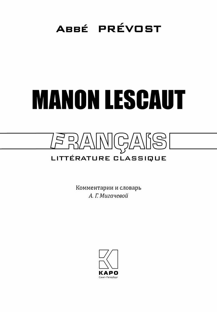 Manon Lescaut / Манон Леско. Книга для чтения на французском языке (Антуан Франсуа Прево); КАРО, 1731