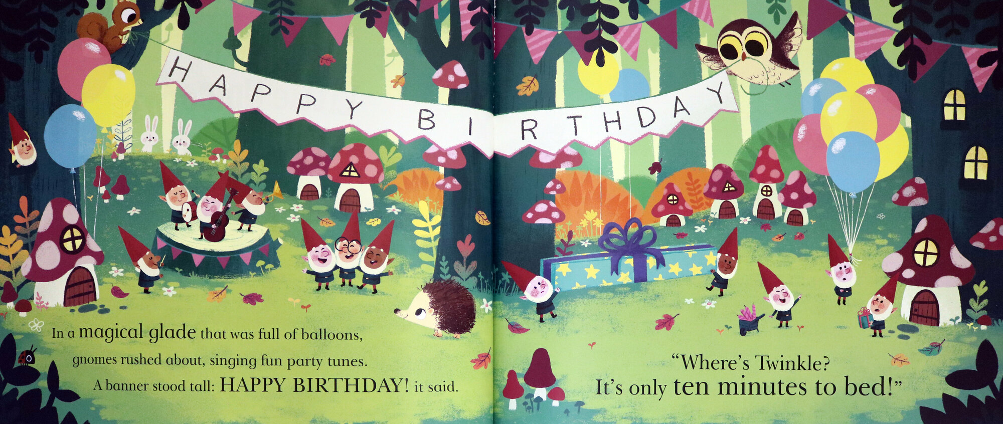It's Twinkle the unicorn's birthday and she's having a sleepover party! There are party games, presents, cake, balloons and even fireworks! But as Twinkle's dad counts down to bedtime, there's still a lot going on . . . will Twinkle and her friends go to sleep in time?
