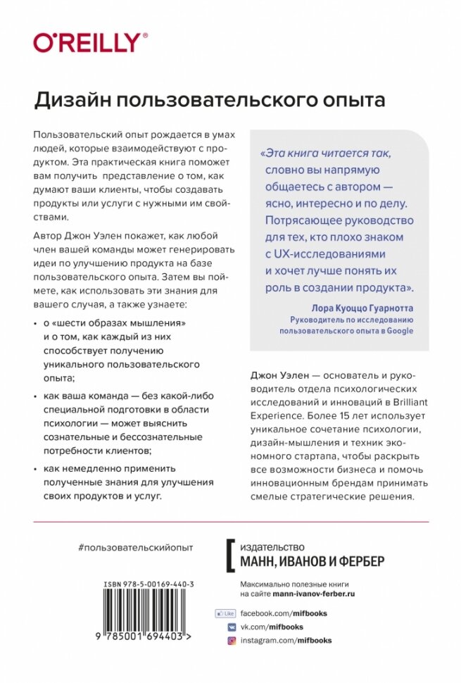 Дизайн пользовательского опыта (Джон Уэлен); Манн, Иванов и Фербер (МИФ), 2019