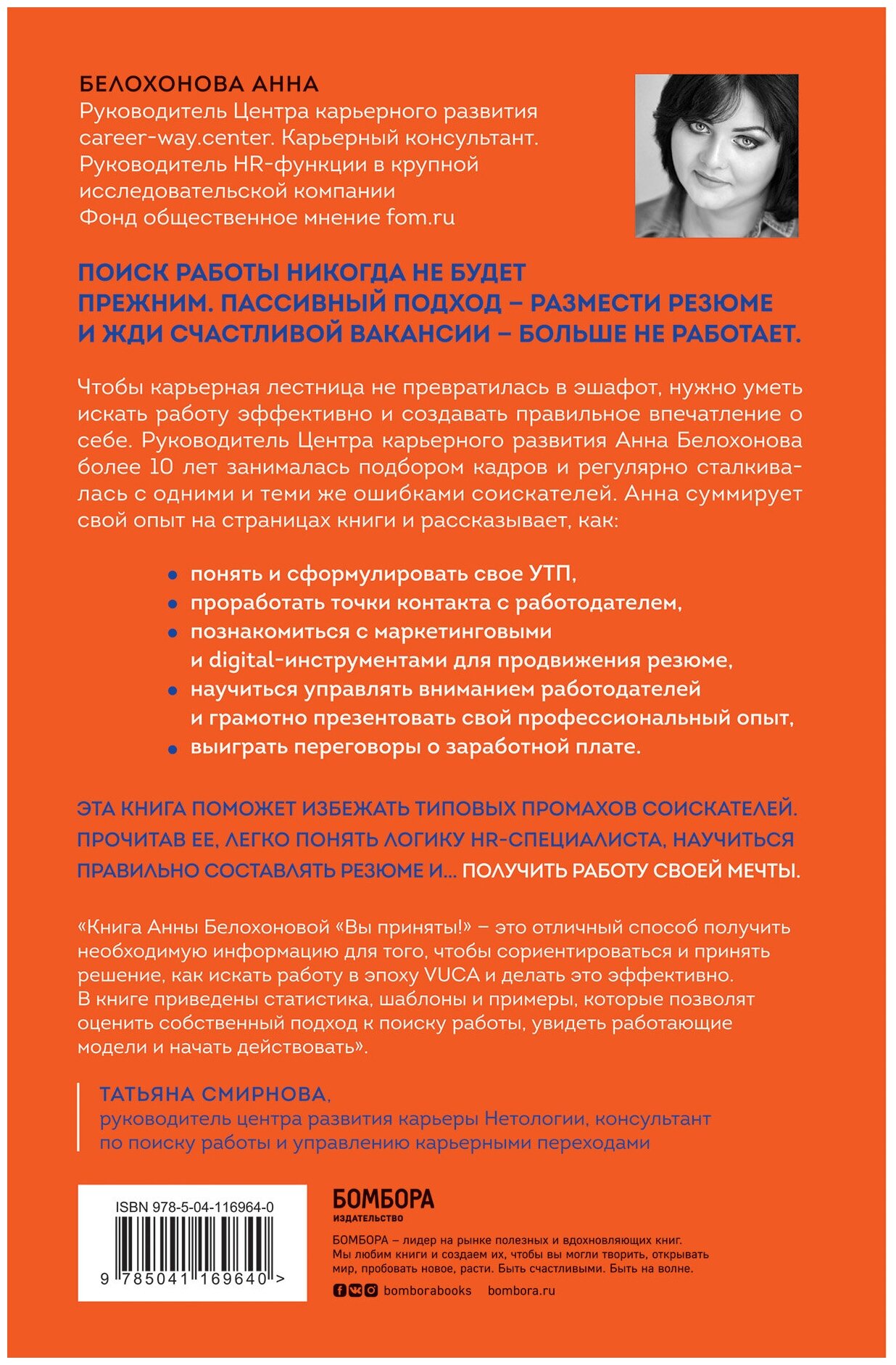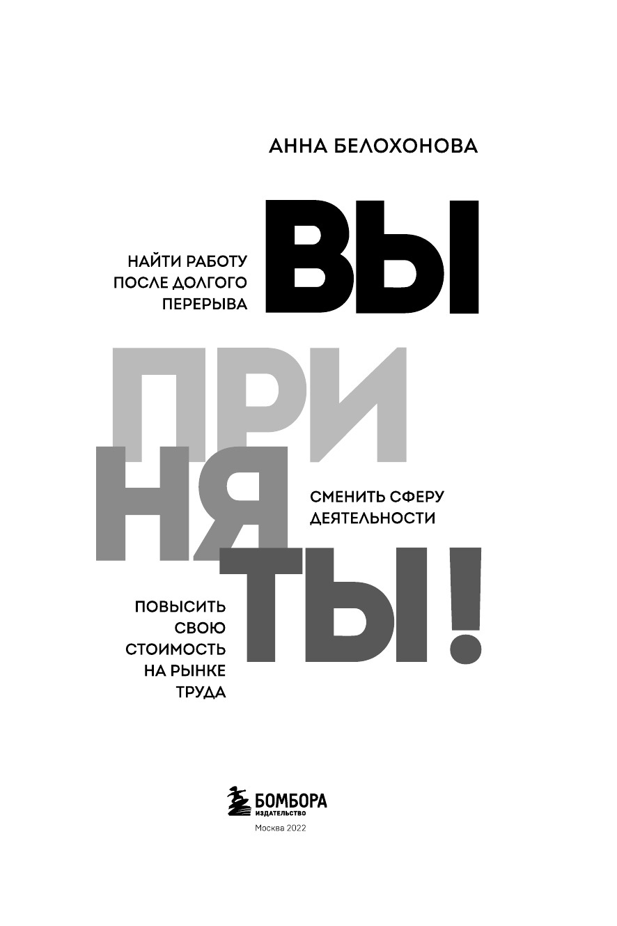 Вы приняты! Найти работу после долгого перерыва. Сменить сферу деятельности. Повысить свою стоимость на рынке труда (Белохонова Анна Владимировна); Бомбора, 2021