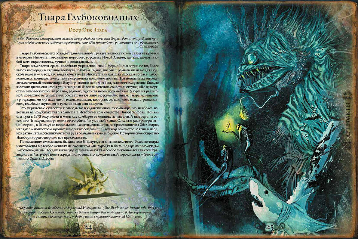 Арты в книге погружают читателя в атмосферу хтонического ужаса. Они выполнены очень детализировано. Также видно, что проделана очень большая работа по структуризации творчества Лавкрафта, так как здесь не только его последователи, но и вдохновители, из-за этого ощущается целостность его мира.