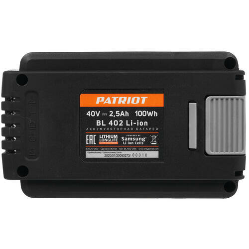 | Совместимость | садовый инструмент Patriot с рабочим напряжением 40 Вольт |