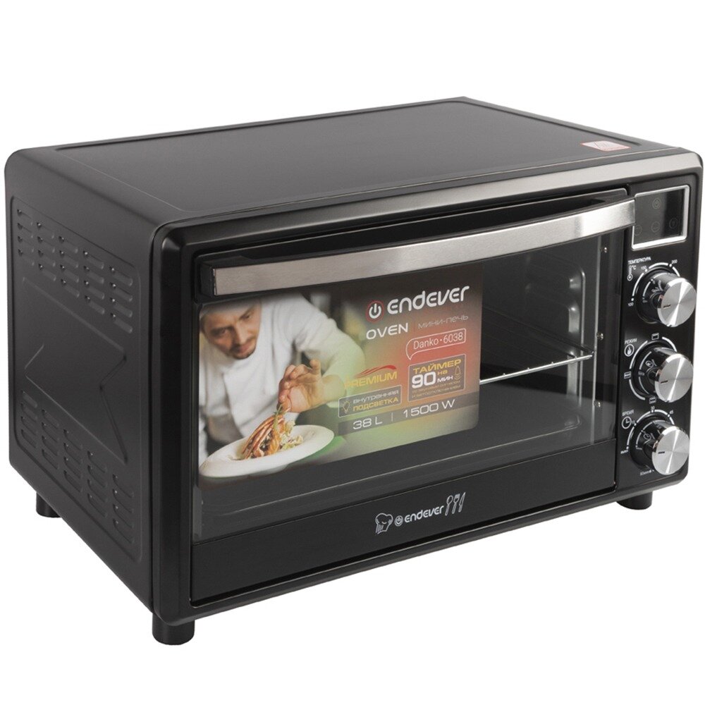 Модель ENDEVER Danko-6038 – современная электрическая мини-печь, выполненная в элегантном черном цвете. Внутренний объем печи - 38л, мощность - 1500Вт. Это позволяет ей быть стильным, компактным и мощным инструментом на Вашей кухне. Все элементы управления печью удобно расположены справа от дверцы. Модель снабжена внутренней подсветкой, информативным дисплеем с индикатором режима работы (подогрев верхний, нижний, двусторонний), большой дверцей, а так же таймером на 90 минут с функцией автоотключения. Все эти качества обеспечат легкость и комфорт при контакте с данным инструментом и станут приятным бонусом в процессе приготовления Ваших любимых блюд. Вместе с печью в комплект входит: хромированная решётка, противень, ручка для извлечения поддона и решетки.