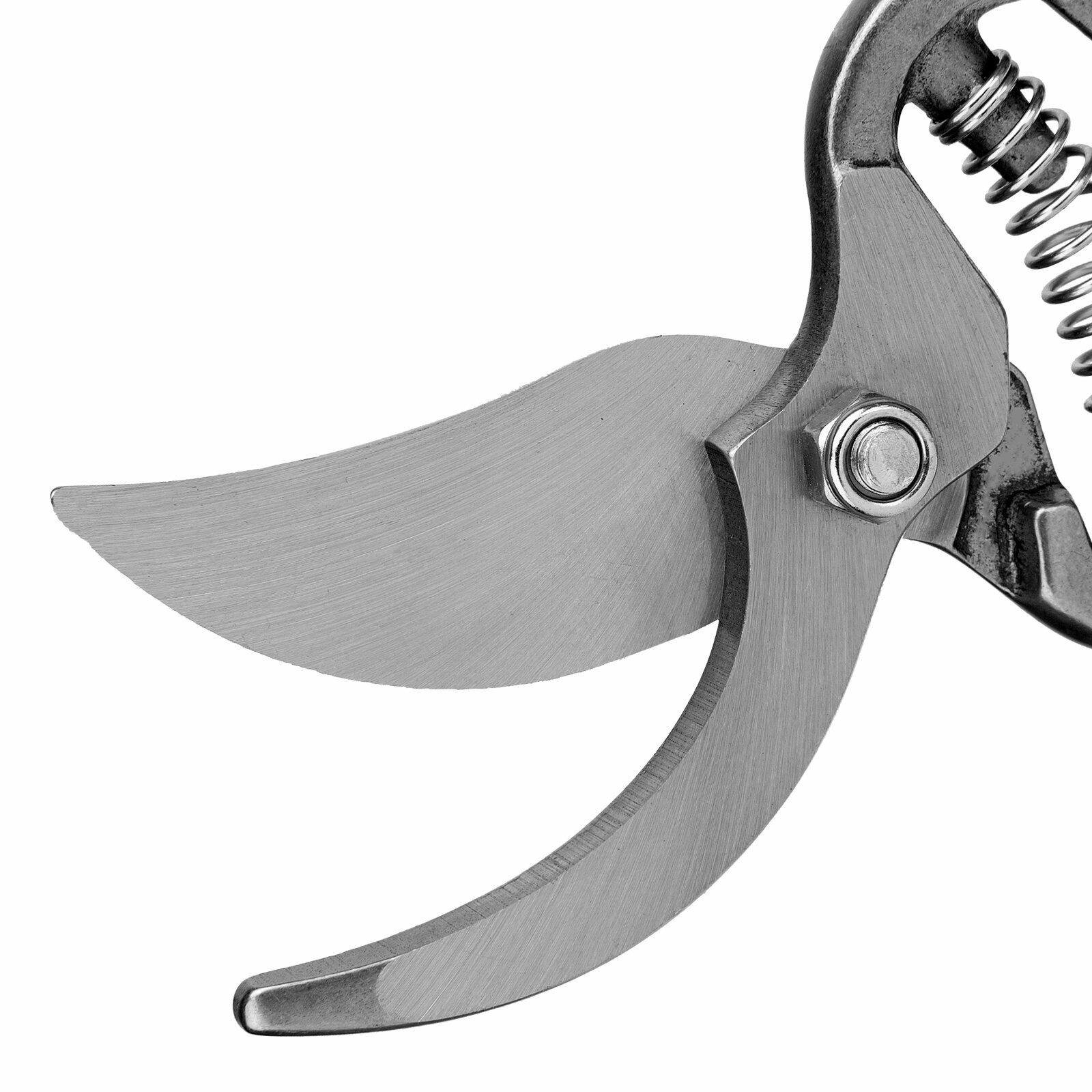 Изогнутые лезвия секатора соединяются друг с другом как лезвия ножниц.